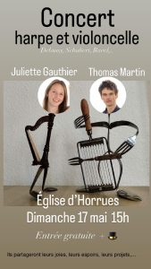 Concert harpe et violoncelle à Horrues par Marie · 30 avril 2026 Détails de l'événement Date: 17 mai 2026 15 h 00 – 17 h 00 min Lieu: Horrues Catégories: Horrues