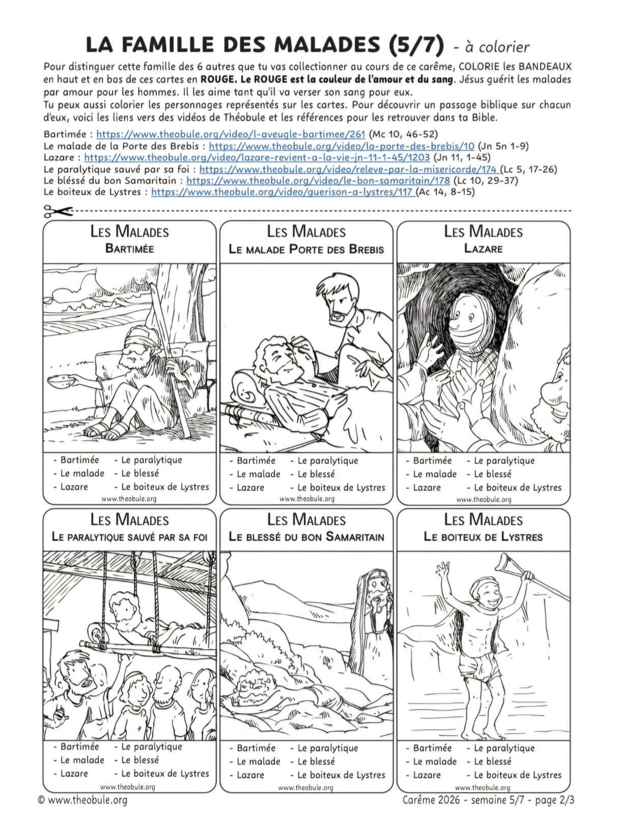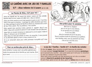 – pages suivantes : la cinquième famille (N&B ou couleur) du jeu que nous composons pendant les 7 semaines du Carême.