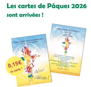 Pourquoi ne pas offrir à vos voisins, à une personne seule ou malade, une carte de Pâques en leur souhaitant Joie et Paix ? Celles-ci sont disponibles auprès des sacristains au prix de 0,50 € l’affiche et 0,20 € la carte, et ce jusqu’au dimanche des Rameaux.