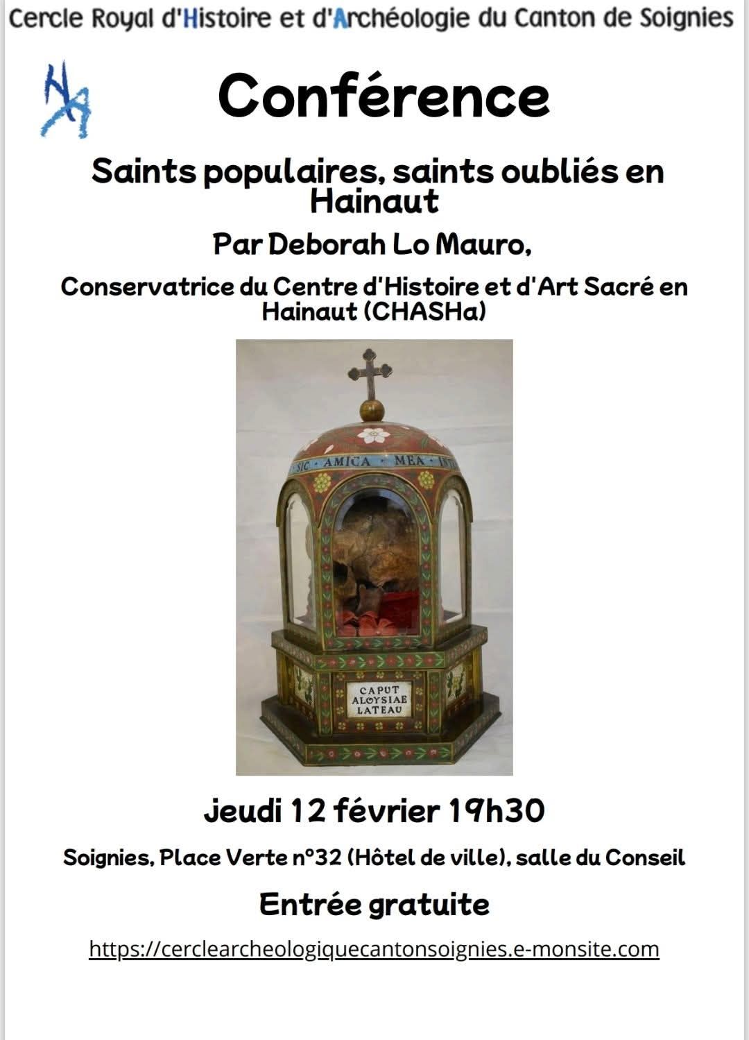 Le cercle royal d’histoire et d’archéologie du canton de Soignies vous invite à cette conférence : Saints populaires, saints oubliés en Hainaut.